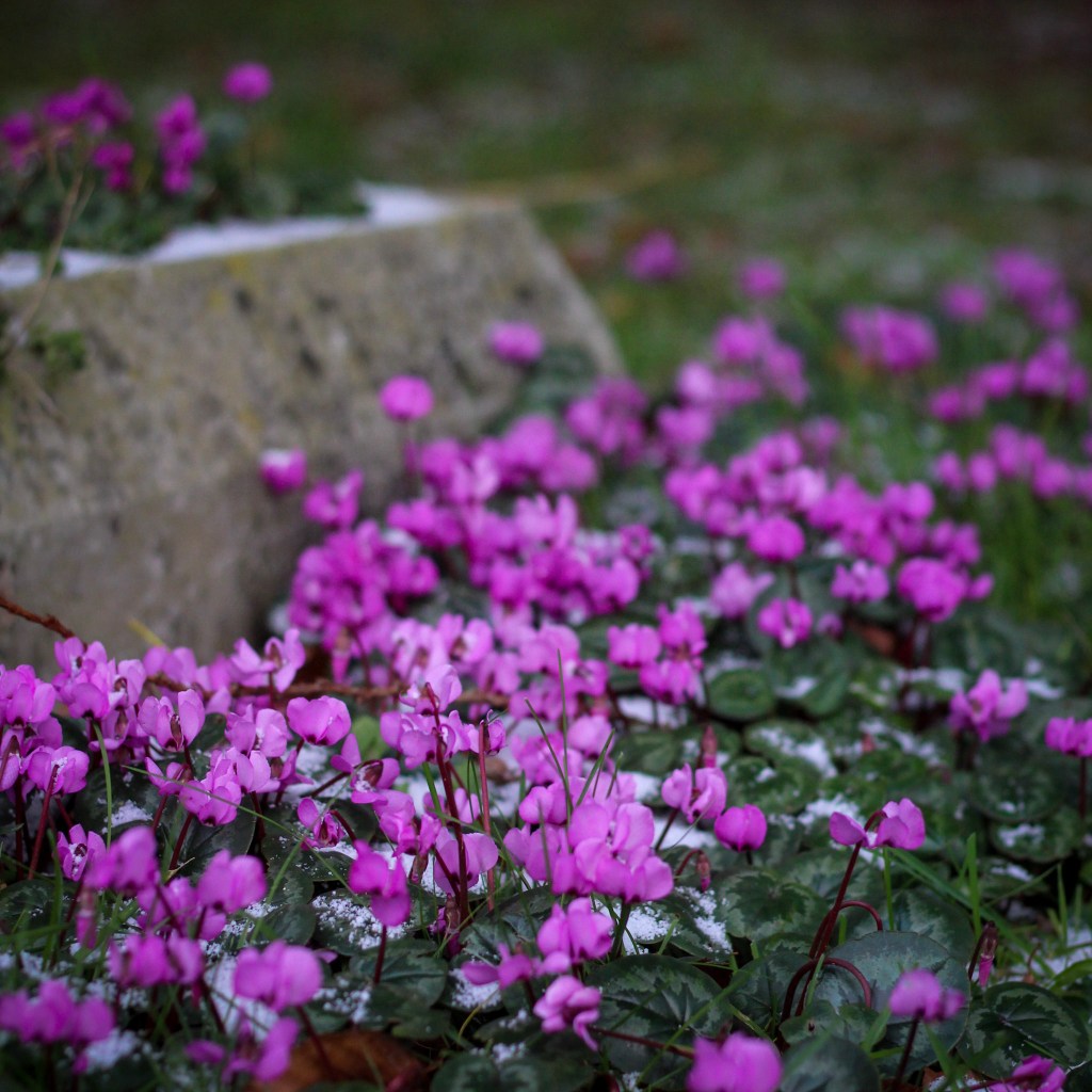 February for me, is a month where we can notice so many changes in nature. Just in the last two weeks alone the earth has gone from being completely frozen solid for days on end, to slowly warming and bursting with life. I spotted a sea of bright magenta Cyclamen that I spend at least 10 minutes observing and photographing. After a dark grey winter, those pops of colour appearing are so special. Everything is about to change as we transition into Spring and its oh so exciting.