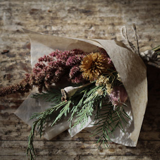 While I await having enough flowers to start harvesting and arranging with, I’ve been making some lovely mini bouquets with our dried flower stock from last season, that has perfectly lasted through the winter to keep me busy between seasons.